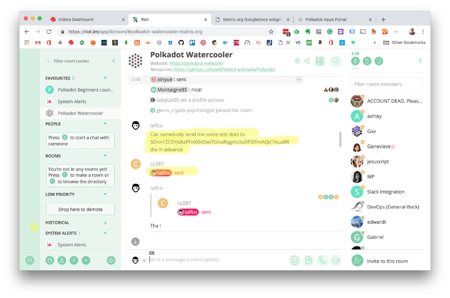 Polkadot Watercooler on Riot, where you will find a lot of helpful people which will send you some DOT’s to your account address.