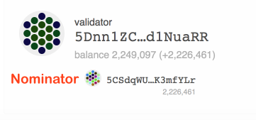 As you can see here, my account is backed by a nominator which adds 2’226’461 dots.
