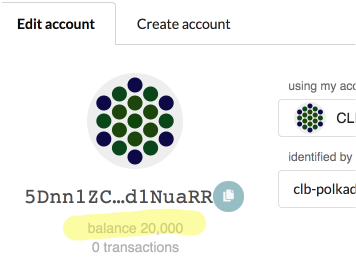 After receiving some test DOT’s head over to your account and check the balance, in my case 20’000 dots were deposited.